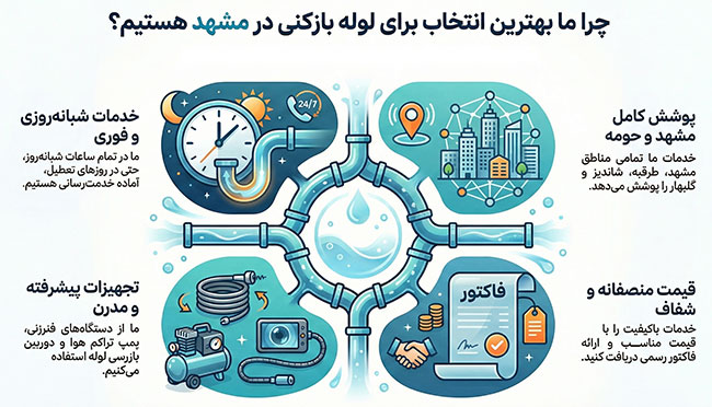 انتخاب یک مجموعه فنی معتبر در زمان بروز مشکل، فقط به قیمت خلاصه نمیشود؛ موضوع اصلی اعتماد، سرعت و مسئولیتپذیری است. خدمات فنی [نام برند شما] با سالها تجربه در حوزه لوله بازکنی مشهد، بر پایه شفافیت و رضایت مشتری شکل گرفته است. از لحظه تماس تا پایان کار، همه چیز طبق روال مشخص و حرفهای انجام میشود؛ اعلام هزینه قبل از شروع، اجرای اصولی و پاسخگویی پس از خدمات. استفاده از نیروهای آموزشدیده، تجهیزات استاندارد و پایبندی کامل به نرخ مصوب اتحادیه باعث شده مشتریان ما بدون نگرانی خدمات دریافت کنند. ما بهجای وعدههای تبلیغاتی، عملکرد قابل سنجش ارائه میدهیم؛ کاری که تست میشود، تضمین دارد و محیط را تمیز تحویل میدهد. هدف ما حل ریشهای مشکل است، نه بازگشت دوباره آن.